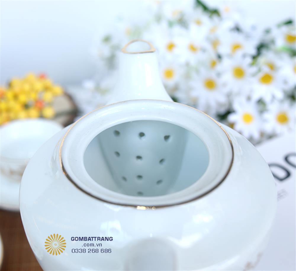 Lớp men trắng tinh như ngọc, bóng mịn, phản chiếu ánh sáng nhẹ nhàng, khiến cho bộ sản phẩm trở nên nổi bật trong mọi không gian – từ phòng khách cổ điển đến không gian trà đạo hiện đại.ấm chén Bát Tràng giá rẻ