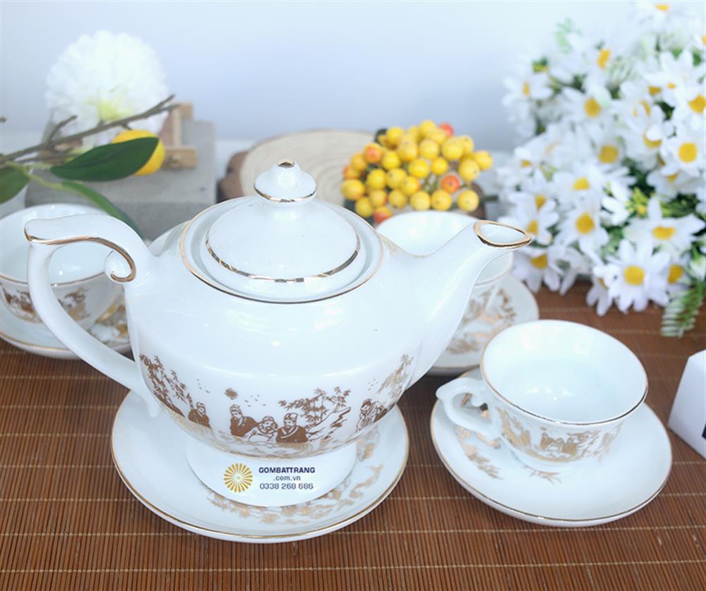 Trong những năm gần đây, xu hướng sử dụng ấm chén Bát Tràng giá rẻ ngày càng trở nên phổ biến, không chỉ bởi giá thành hợp lý mà còn bởi vẻ đẹp tinh tế, sang trọng mà dòng sản phẩm này mang lại. Bộ ấm chén với họa tiết tranh làng quê cổ mạ vàng dưới lớp men trắng bóng loáng đã chinh phục được cả những khách hàng khó tính nhất.