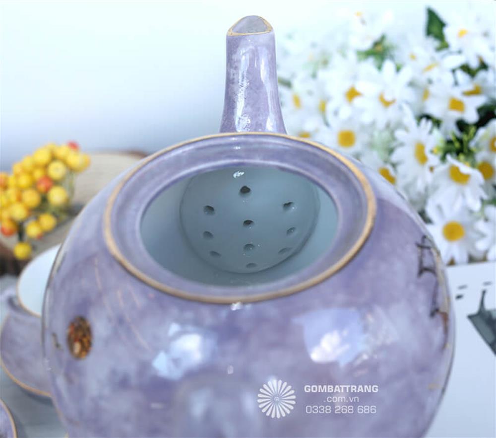 Trong bất cứ gia định người Việt nào cũng có ít nhất một bộ ấm chén bát tràng cao cấp. Ấm chén Bát Tràng men hỏa biến là lựa chọn lý tưởng cho những ai yêu thích sự độc đáo và khác biệt. Màu men tím nhạt hỏa biến tạo hiệu ứng lạ mắt, bóng loáng, mịn màng và độc bản – không bộ nào trùng lặp. Đây là một điểm nhấn hoàn hảo cho không gian trà đạo hiện đại.