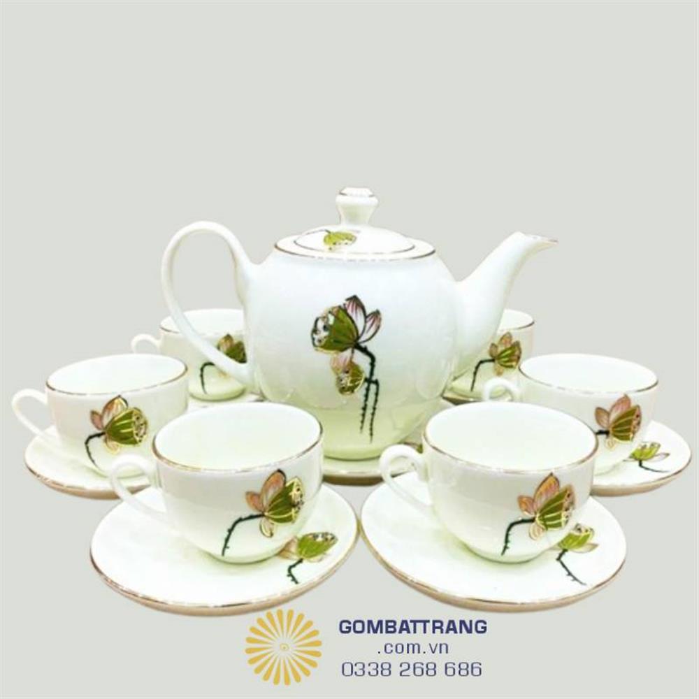 Vẻ đẹp ấm chen đẹp chén đài sen men kem chỉ vàng
