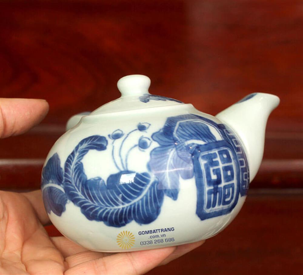 Ấm chén men lam cổ Mai Thọ sang trọng