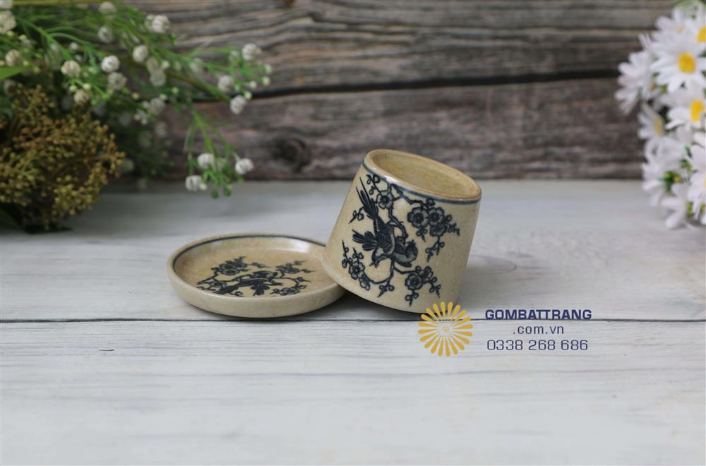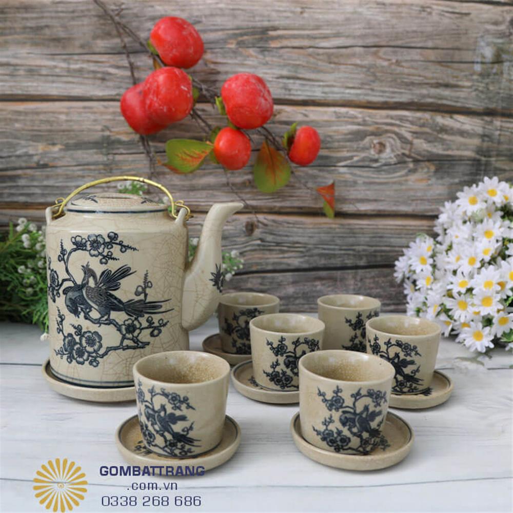 Ấm chén men rạn vẽ chim én hoa mai món quà ý nghĩa