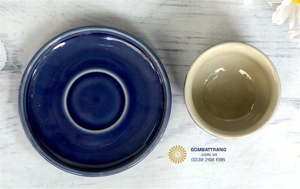 Bộ ấm chén đẹp cao cấp với đĩa lót màu xanh lam đồng bộ, có đường kính phù hợp với chén trà. Mỗi chiếc đĩa lót không chỉ có chức năng thực tiễn là chống bám nước, bảo vệ mặt bàn mà còn tăng thêm vẻ sang trọng khi bày biện. Thiết kế đĩa lót đơn giản nhưng tinh tế, viền đĩa được hoàn thiện cẩn thận, tạo điểm nhấn cho tổng thể bộ tách trà sang trọng.ấm chén pha trà Bát Tràng
