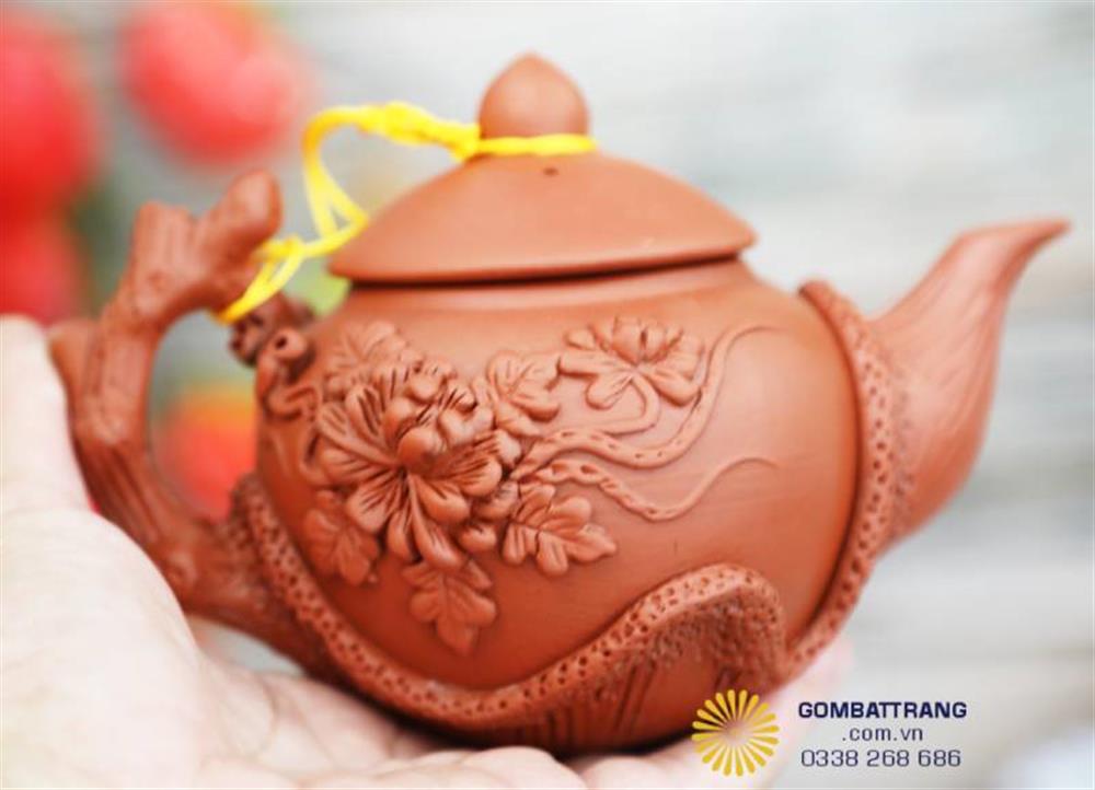 Ấm đất gốm Bát Tràng hoa nổi độc đáo, siêu hot