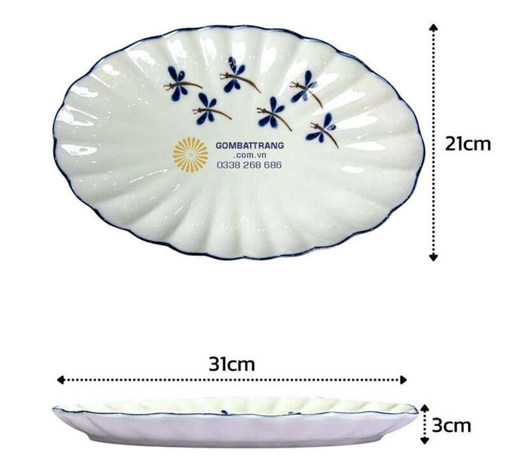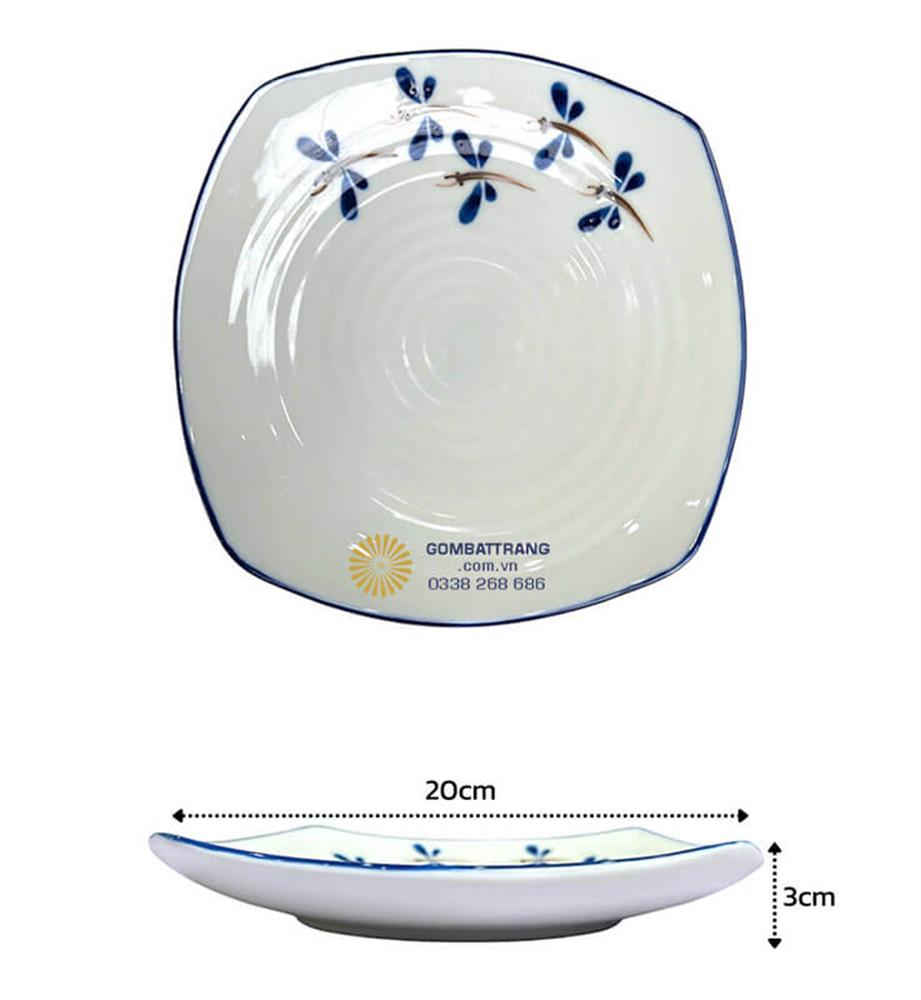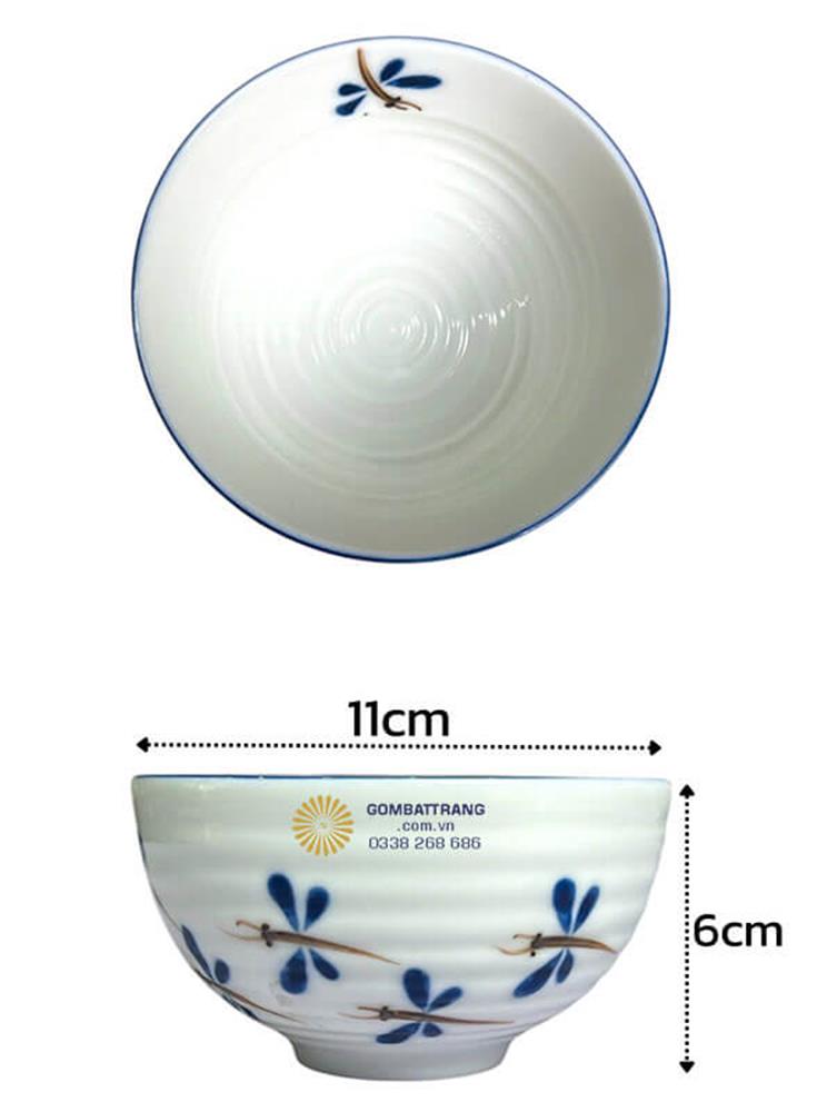 Bát đĩa bát tràng cao cấp vẽ chuồn chuồn rẻ đẹp