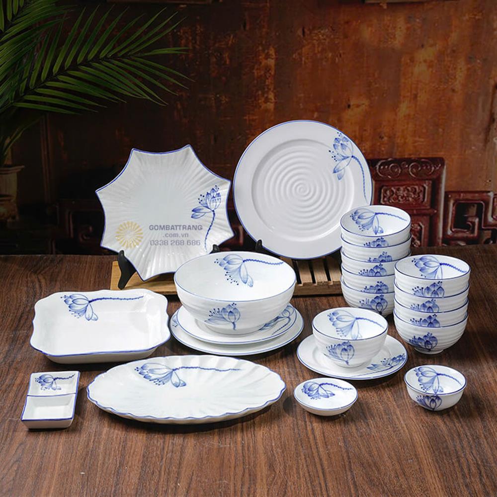 Bộ bát đĩa đẹp Bát Tràng với số lượng phong phú các phụ kiện đáp ứng mọi nhu cầu từ bữa ăn gia đình đến tiếp khách quan trọng