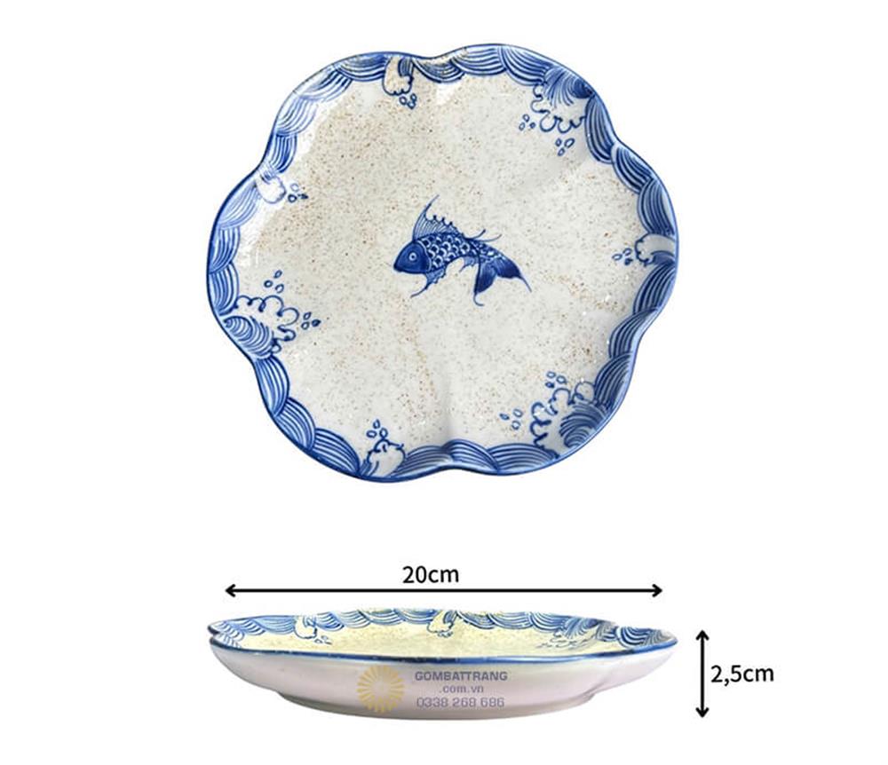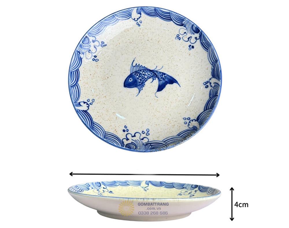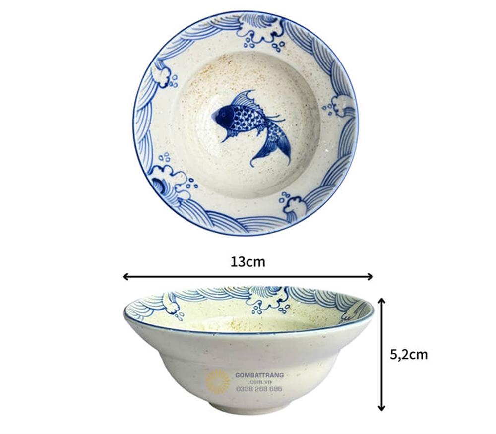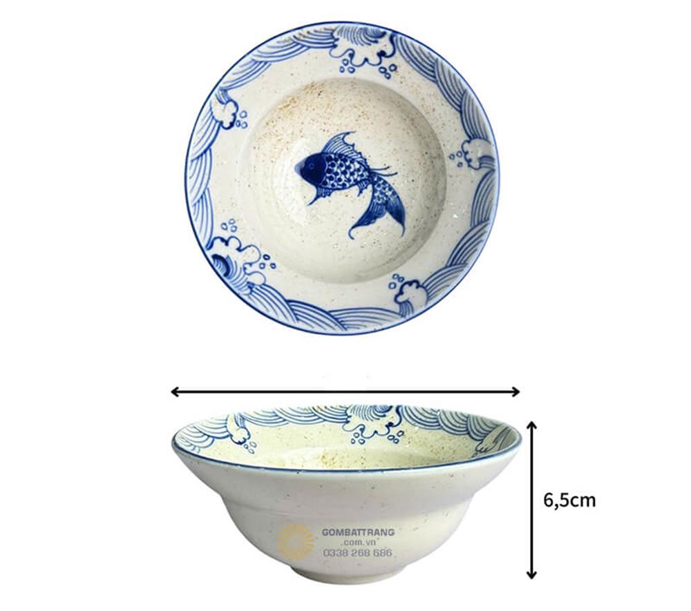 Bát đĩa bát tràng cao cấp được chế tác tỉ mỉ bởi nghệ nhân, họa tiết cá tiêu mang ý nghĩa phong thủy tích cực