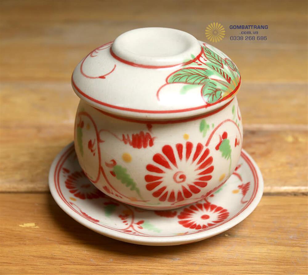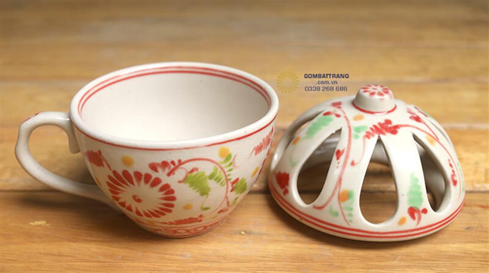 Chất liệu gốm sứ cao cấp giữ nhiệt tốt, giúp tách trà luôn đậm vị. Cốc gốm sứ có nắp đậy hình vòm với lỗ thoáng khí tinh xảo là phụ kiện đa năng. Nắp được thiết kế khéo léo với họa tiết hoa đỏ đồng bộ, tạo nên sự thống nhất hoàn hảo cho cả bộ bát đĩa giả cổ.bát đĩa cổ