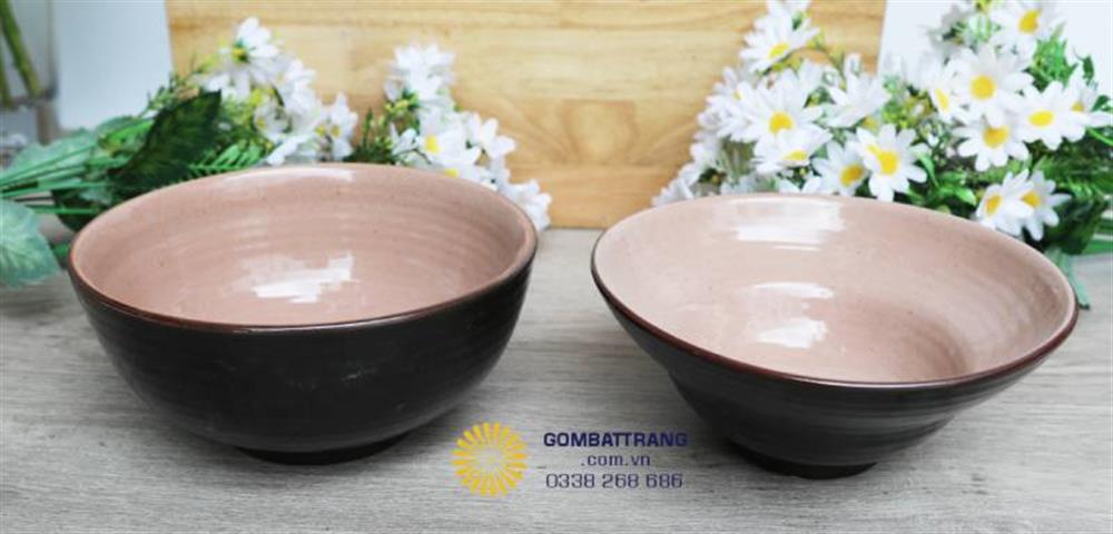 Đường viền nâu đỏ thủ công được nhấn mạnh trên miệng bát, tạo khung sắc nét cho món ăn và làm nổi bật gam màu hồng đất tinh tế, giúp món ăn trở nên sống động khi lên bàn.