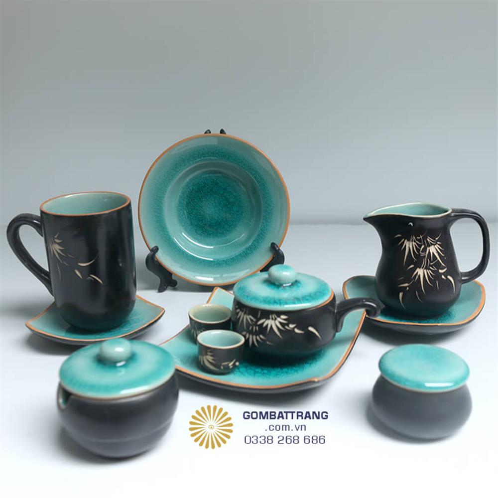 Thiết kế gồm nhiều phụ kiện như bát, đĩa sâu lòng, tách trà, bình rót và khay đồng bộ. Mỗi món đều có sự liên kết về màu sắc và họa tiết. Tạo nên một bộ bát đĩa giả cổ giá rẻ nhưng đầy đủ tiện ngh và đảm bảo an toàn cho sức khỏe người dùng.bát đĩa nhà hàng cao cấp