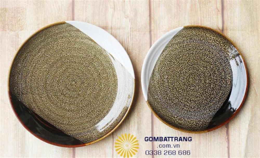 Bộ đôi đĩa tròn tối giản, sang trọng với các đường vân men hỏa biến lan tỏa tự nhiên như một tác phẩm nghệ thuật.