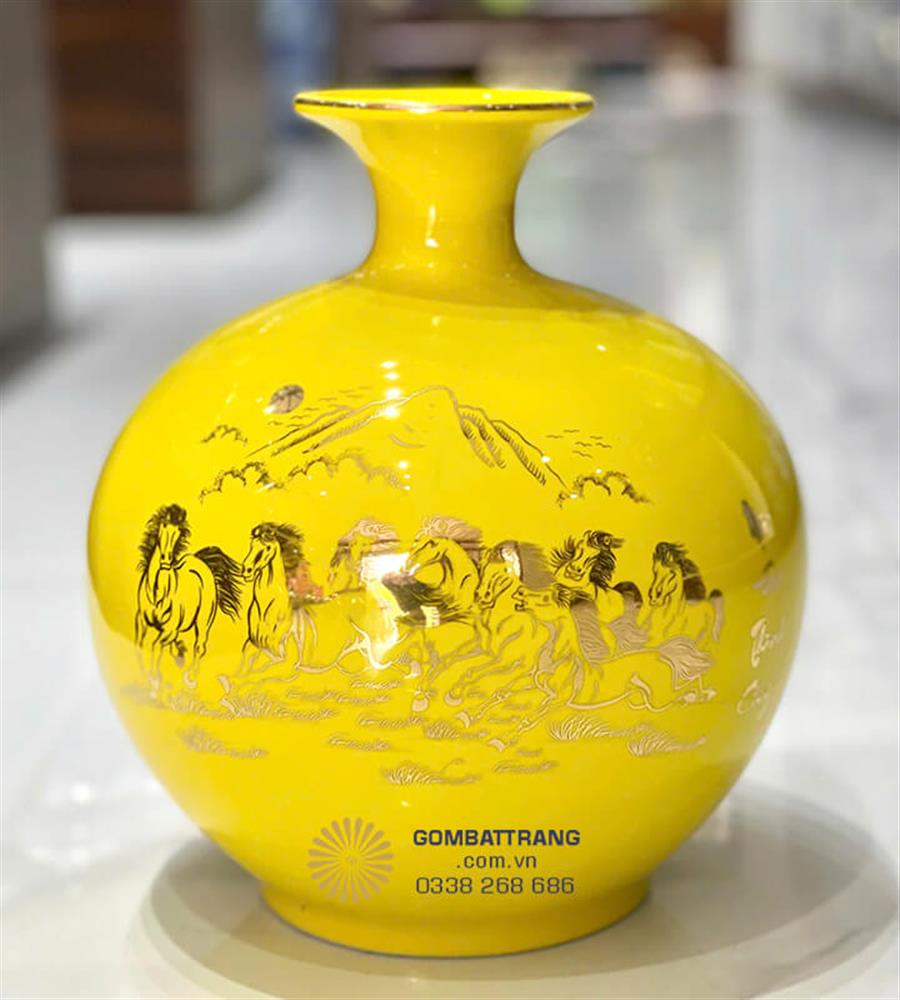 Sự kết hợp giữa bình hút lộc màu vàng hoàng kim và họa tiết Mã đáo thành công tạo nên một vật phẩm phong thủy hoàn hảo, vừa đẹp mắt vừa mang đến những điều tốt lành cho gia chủ. Với mức bình hút lộc giá rẻ phù hợp túi tiền, đây là món quà ý nghĩa cho người thân, bạn bè hoặc đối tác kinh doanh.bình gốm hút tài lộc
