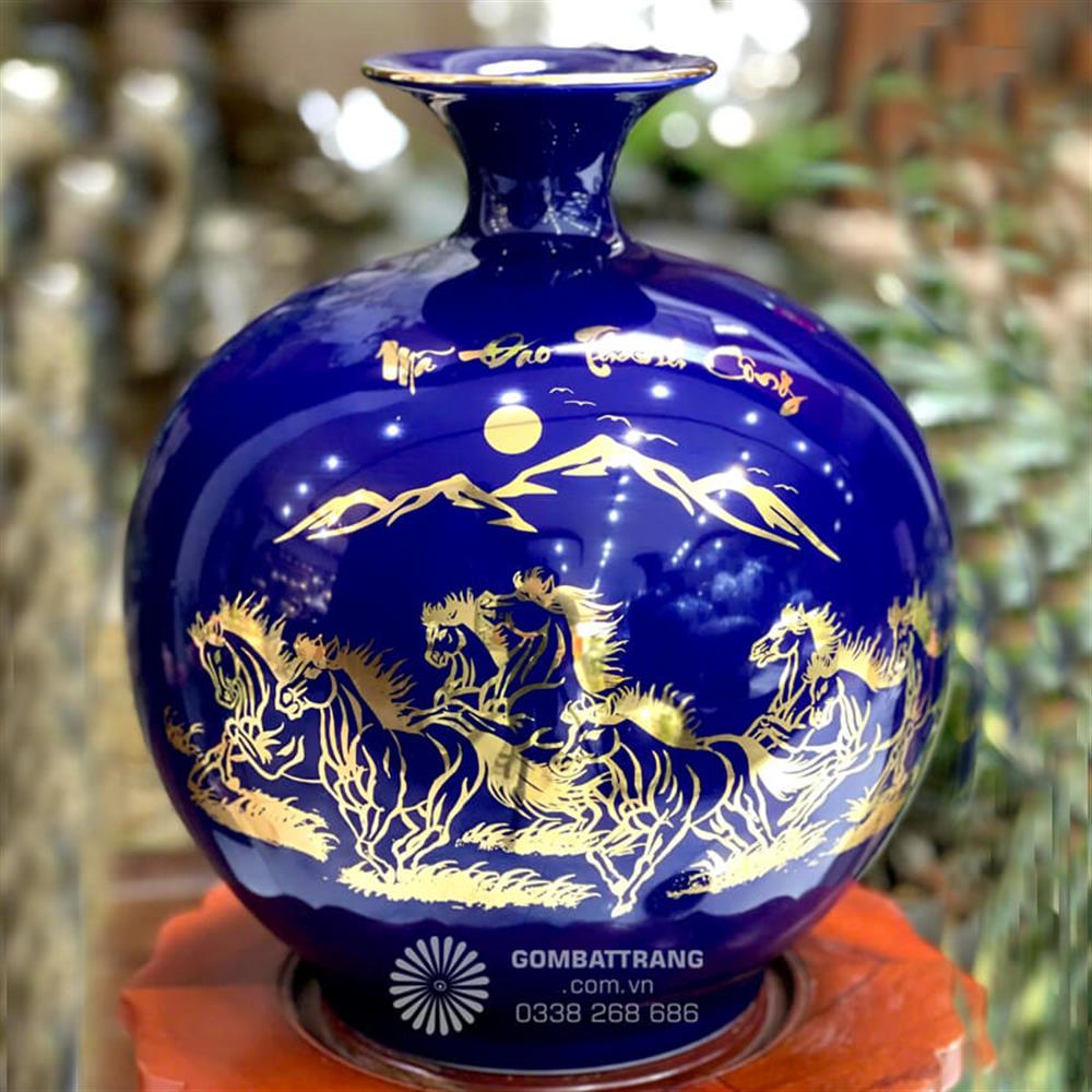 Bình Gốm Sứ Hút Tài Lộc Xanh Dương Họa Tiết Mã Đáo Thành Công