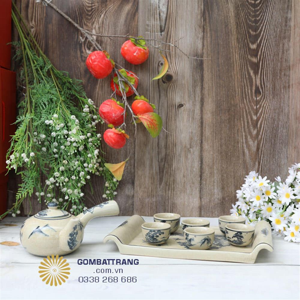Họa tiết bộ trà mang tinh thần cổ truyền sang trọng của làng nghề Bát Tràng.