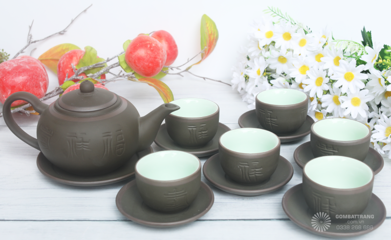 Bộ ấm chén tử sa Bát Tràng được sản xuất từ chất đất tử sa tinh luyện