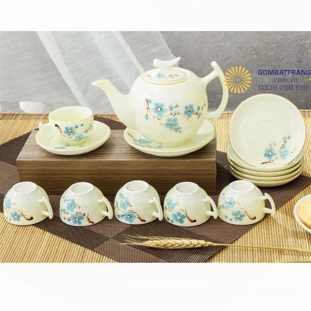 Bộ ấm chén đẹp sang trọng - Bưởi cành đào xanh