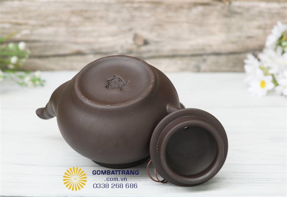 Phần đáy ấm được vuốt tròn mịn, dấu triện Bát Tràng in nổi bật giữa nền đất nâu. Đó không chỉ là ký hiệu xuất xứ, mà còn là lời khẳng định cho chất lượng và tinh thần gốm Việt – bền vững, tinh xảo và đậm hồn nghề.