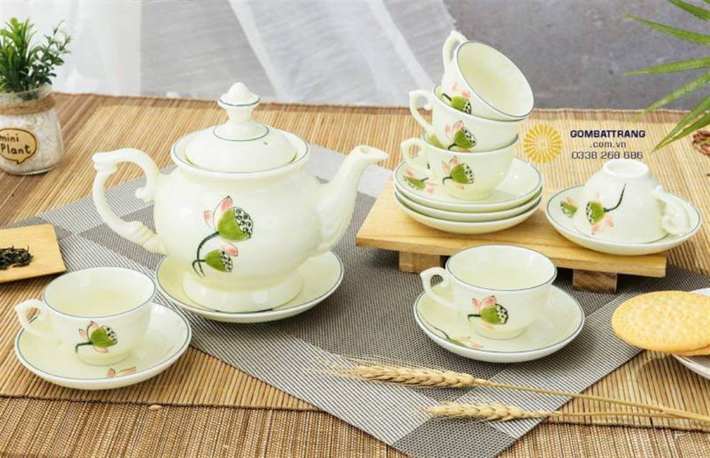 Bộ ấm chén hiện đại hoa sen xanh giảm giá cực sốc