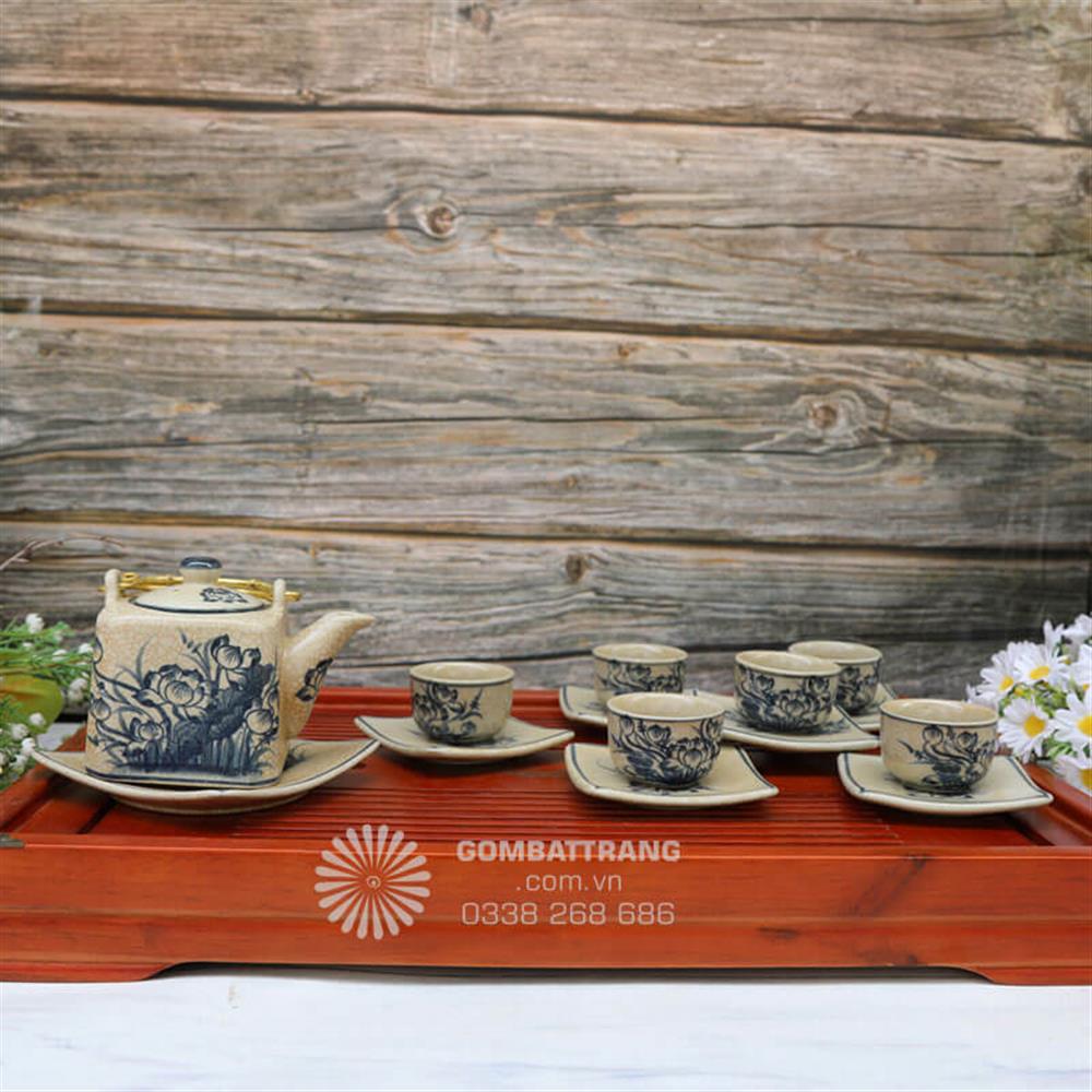 Trong không gian trà đạo truyền thống, ấm chén men rạn cổ luôn là biểu tượng của sự tinh tế và phong cách sống tao nhã. Bộ sản phẩm mang họa tiết hoa sen – biểu tượng của sự thanh khiết, được vẽ tay hoàn toàn bởi nghệ nhân Bát Tràng, tạo nên nét đẹp vừa cổ điển vừa sang trọng. Với kiểu dáng vuông độc đáo, ấm chén men rạn cổ vẽ hoa sen không chỉ dùng để thưởng trà mà còn là món quà tặng mang đậm hồn Việt.