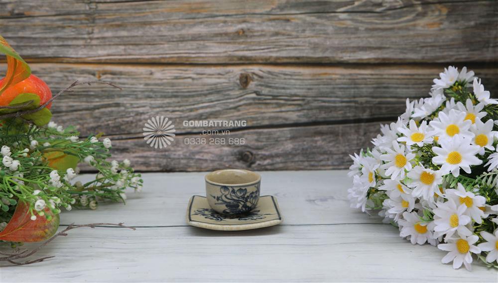 Chén trà nhỏ gọn, men rạn loang tự nhiên kết hợp với đĩa lót vuông tạo nên sự hài hòa trong bố cục. Ngoài ra, bát điếu men rạn cổ cùng họa tiết sen thanh khiết không chỉ mang ý nghĩa phong thủy mà còn giúp không gian trà thêm trọn vẹn.bộ ấm chén men rạn cổ