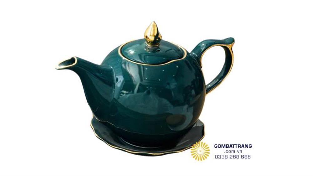 Bộ hoàn chỉnh ấm – chén – đĩa lót đồng bộ, màu sắc sang trọng, rất phù hợp tặng sếp, tặng đối tác hoặc trang trí phòng khách.