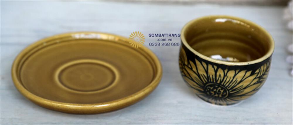 Mỗi chiếc chén đều đi kèm với đĩa lót riêng biệt, được thiết kế tròn trịa với viền nổi trang nhã
