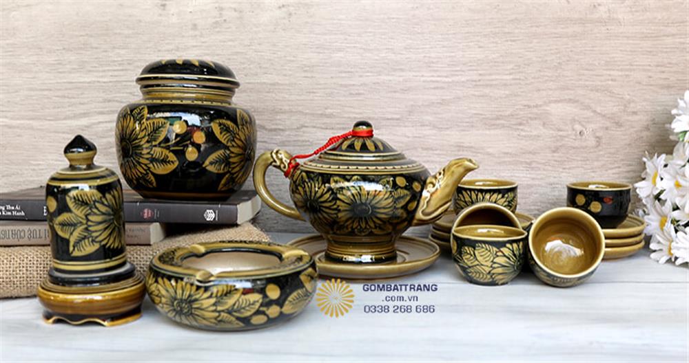 Gam màu đen nâu vàng được lựa chọn cho bộ ấm chén uống trà cao cấp mang đến vẻ đẹp cổ điển, sang trọng và ấm áp. Màu sắc này không chỉ dễ dàng kết hợp với nhiều phong cách trang trí nội thất mà còn tạo cảm giác gần gũi, thân thiện.Bộ ấm chén uống trà cao cấp
