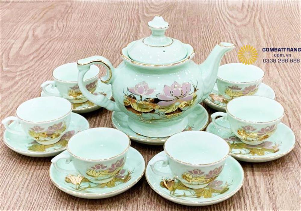 Bước vào không gian phòng khách hay góc thưởng trà, ánh sáng dịu chiếu lên bộ ấm pha trà Bát Tràng, làm lớp men xanh ngọc sáng trong lấp lánh cùng ánh vàng tinh tế trên từng đường nét. Ngay khoảnh khắc ấy, bộ ấm chén không chỉ là vật dụng pha trà, mà còn trở thành điểm nhấn sang trọng, mang hơi thở văn hóa và nghệ thuật thủ công Việt. Bạn cảm nhận được sự tinh tế trong từng chi tiết – từ thân ấm tròn trịa, họa tiết hoa sen nổi tinh xảo, đến từng đường cong mượt mà – tất cả như kể câu chuyện về sự hài hòa và viên mãn cho không gian sống.