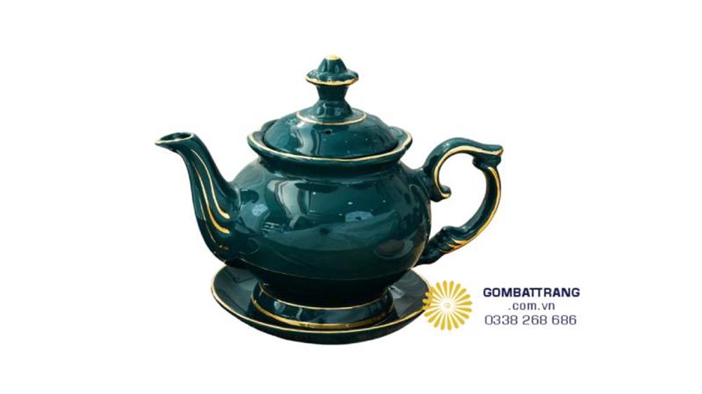 Bộ ấm pha trà đẹp Phú Quý Xanh Bát Tràng bền sang