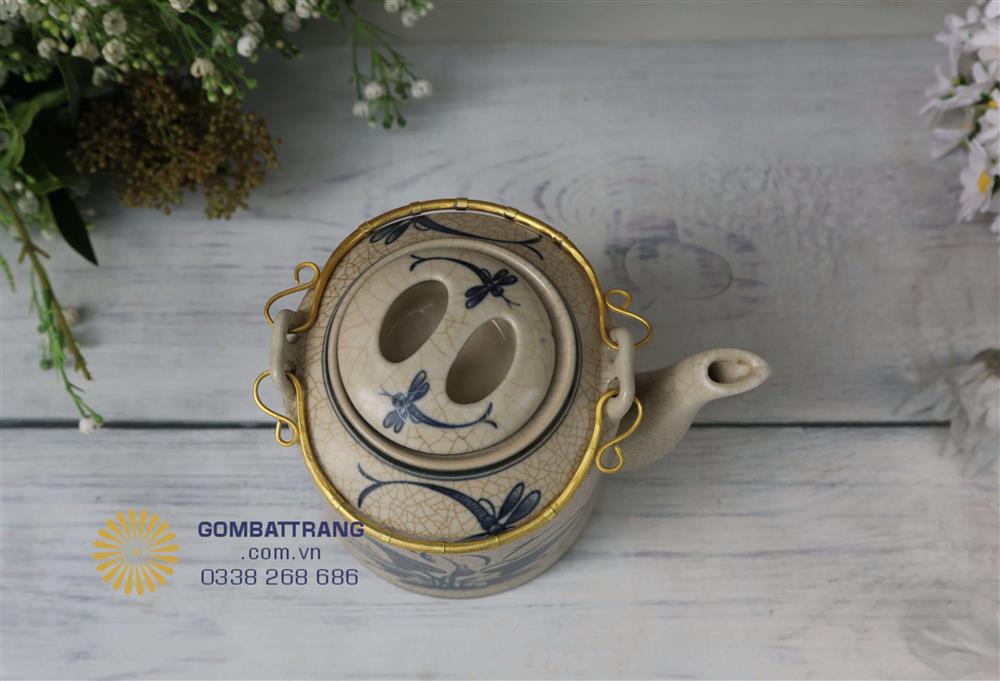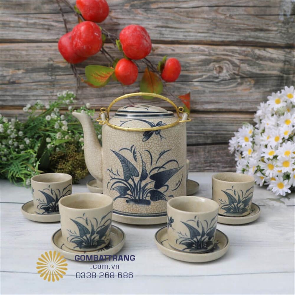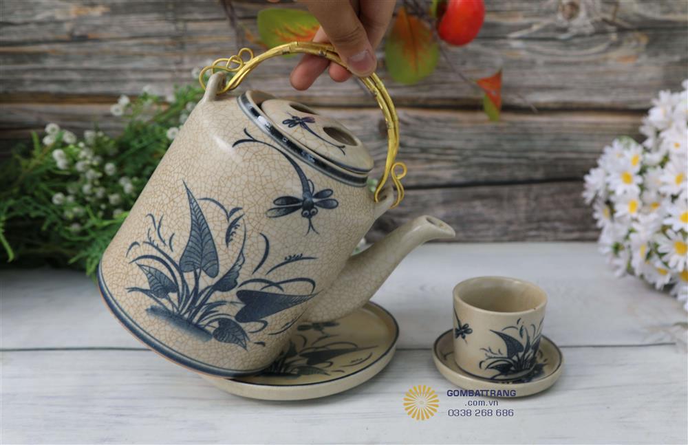 Đặc biệt, họa tiết chuồn chuồn khoai mang phong cách dân dã nhưng lại được thể hiện bằng kỹ thuật vẽ tay nghệ nhân, giúp mỗi bộ ấm tích men rạn có hồn và mang giá trị nghệ thuật độc đáo.