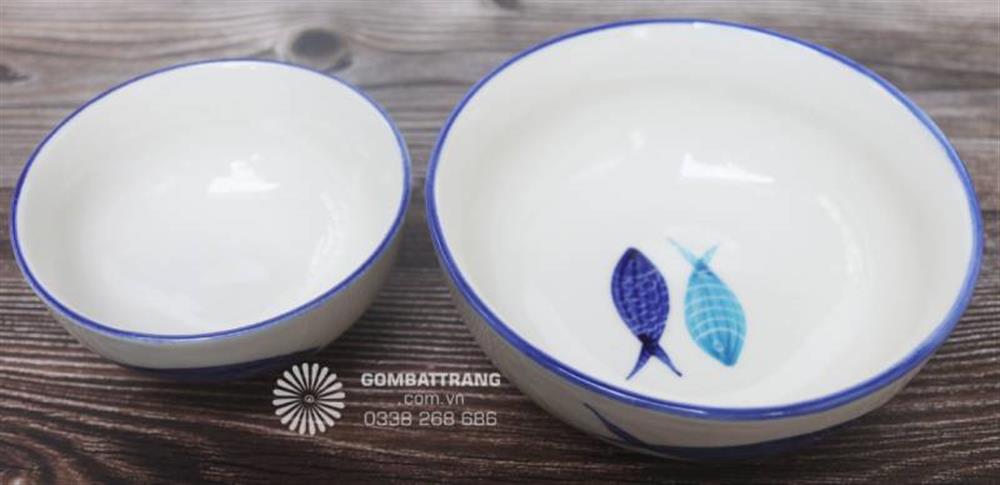 Điểm nhấn của bộ sản phẩm chính là họa tiết đàn cá xanh bơi lội trên nền men trắng ngà. Đây không chỉ là chi tiết trang trí mà còn mang ý nghĩa phong thủy sâu sắc: tượng trưng cho sự sung túc, tài lộc và may mắn. Vì thế, bộ sản phẩm vừa có giá trị sử dụng, vừa thích hợp làm quà tặng tân gia, cưới hỏi hay biếu tặng đối tác. bộ bát đĩa Bát Tràng 11 món