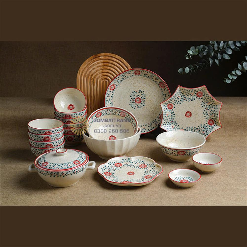 Bộ bát đĩa Bát Tràng cao cấp Cúc Cát Tường sang trọng