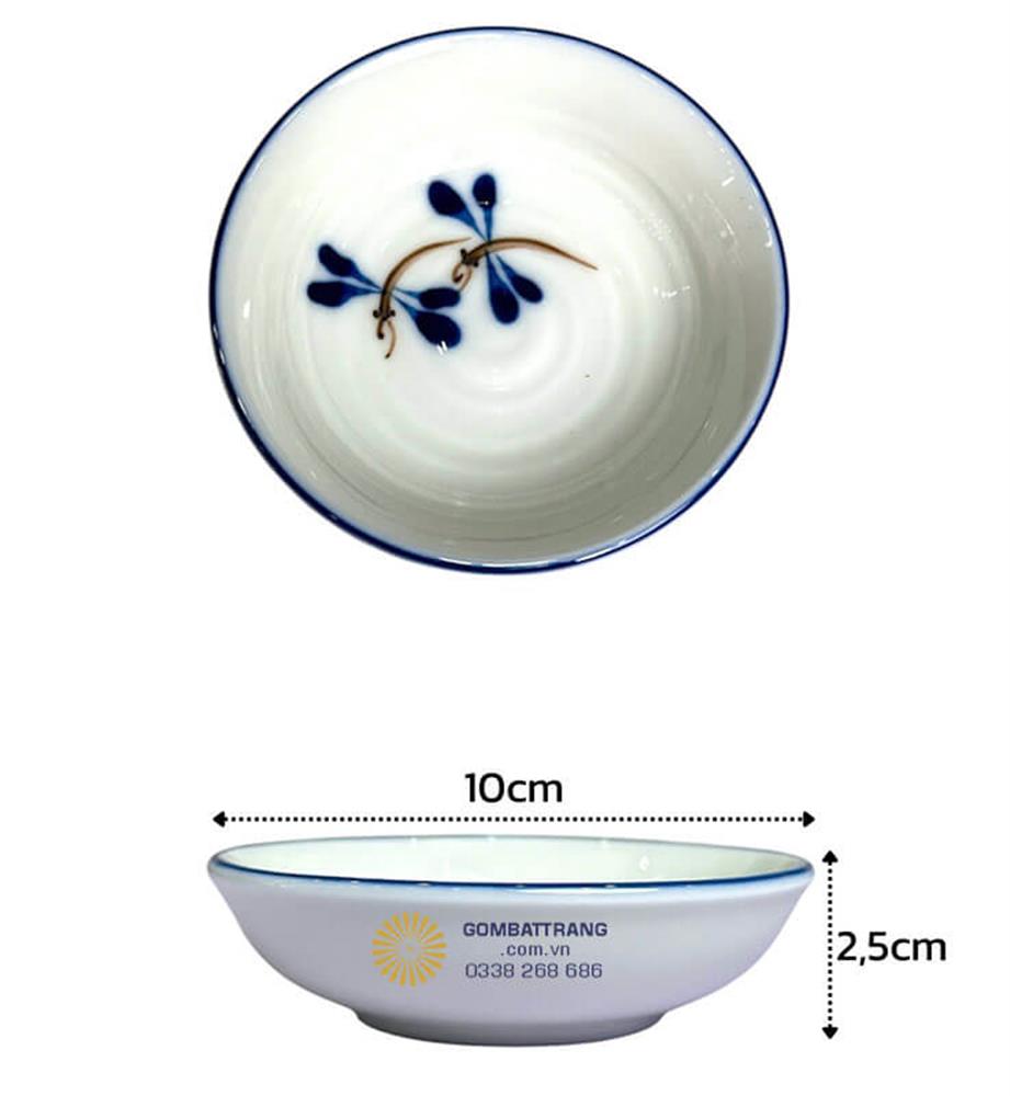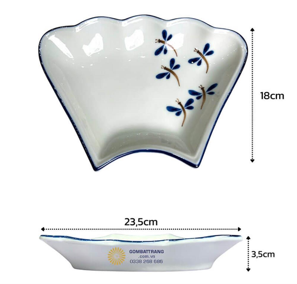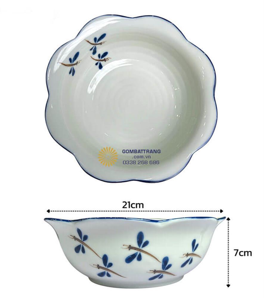 Bộ bát đĩa gốm Bát Tràng mặt trời vẽ chuồn chuồn đẹp