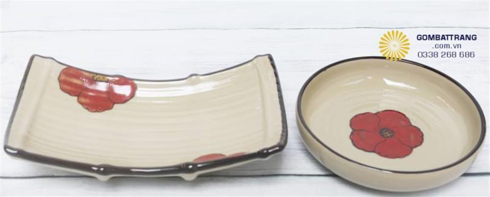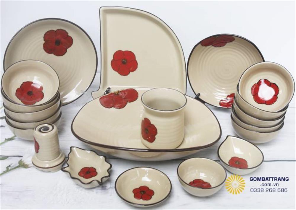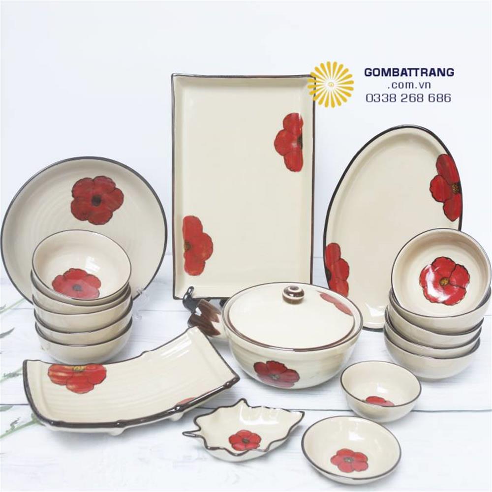 Bộ bát đĩa hoa đỏ Bát Tràng - đa dạng mẫu mã