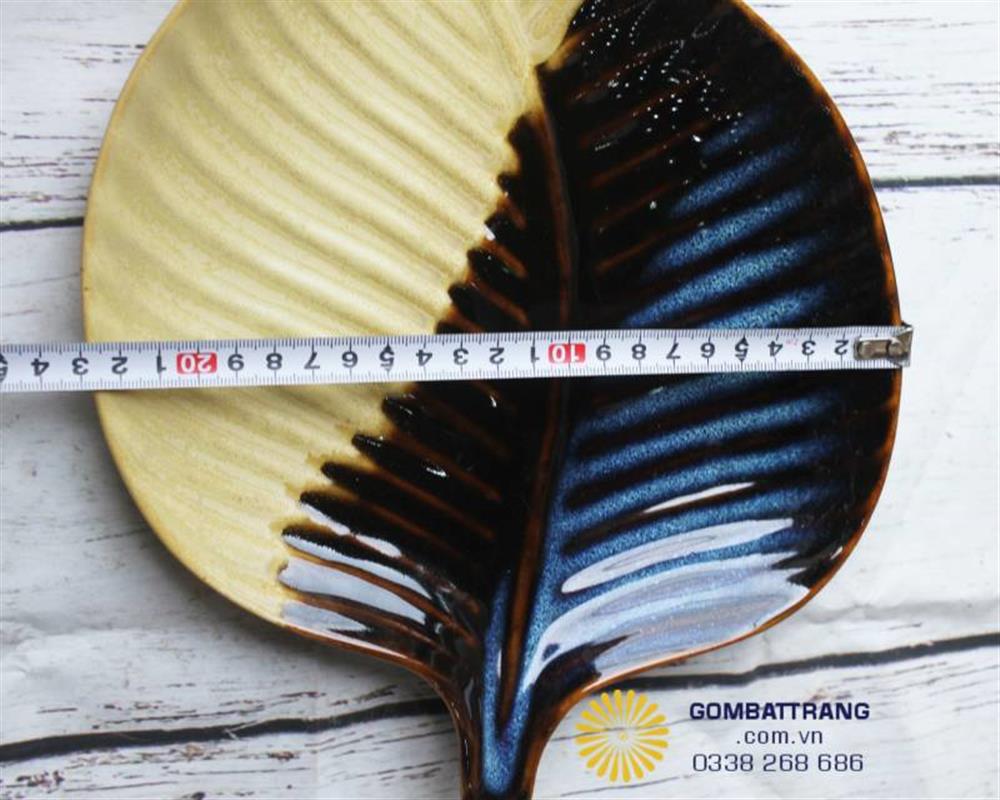 Chiếc Đĩa Hình Lá Đại: Đây chính là "ngôi sao" của bàn tiệc. Với tạo hình chiếc lá mềm mại, các đường gân nổi rõ rệt và sự phối màu đối xứng, chiếc đĩa này là nơi lý tưởng để trình bày các món chính như cá tầm nướng, thịt quay hay những món salad cầu kỳ.