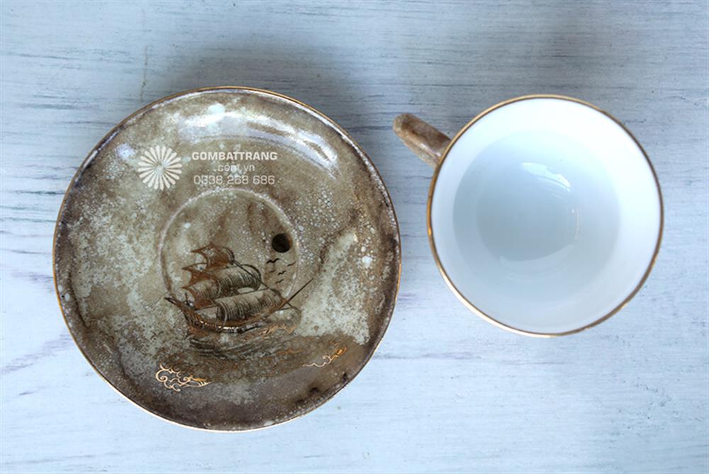 Bộ bình trà Bát Tràng thuận buồm xuôi gió vẽ vàng – Biểu tượng phong thủy