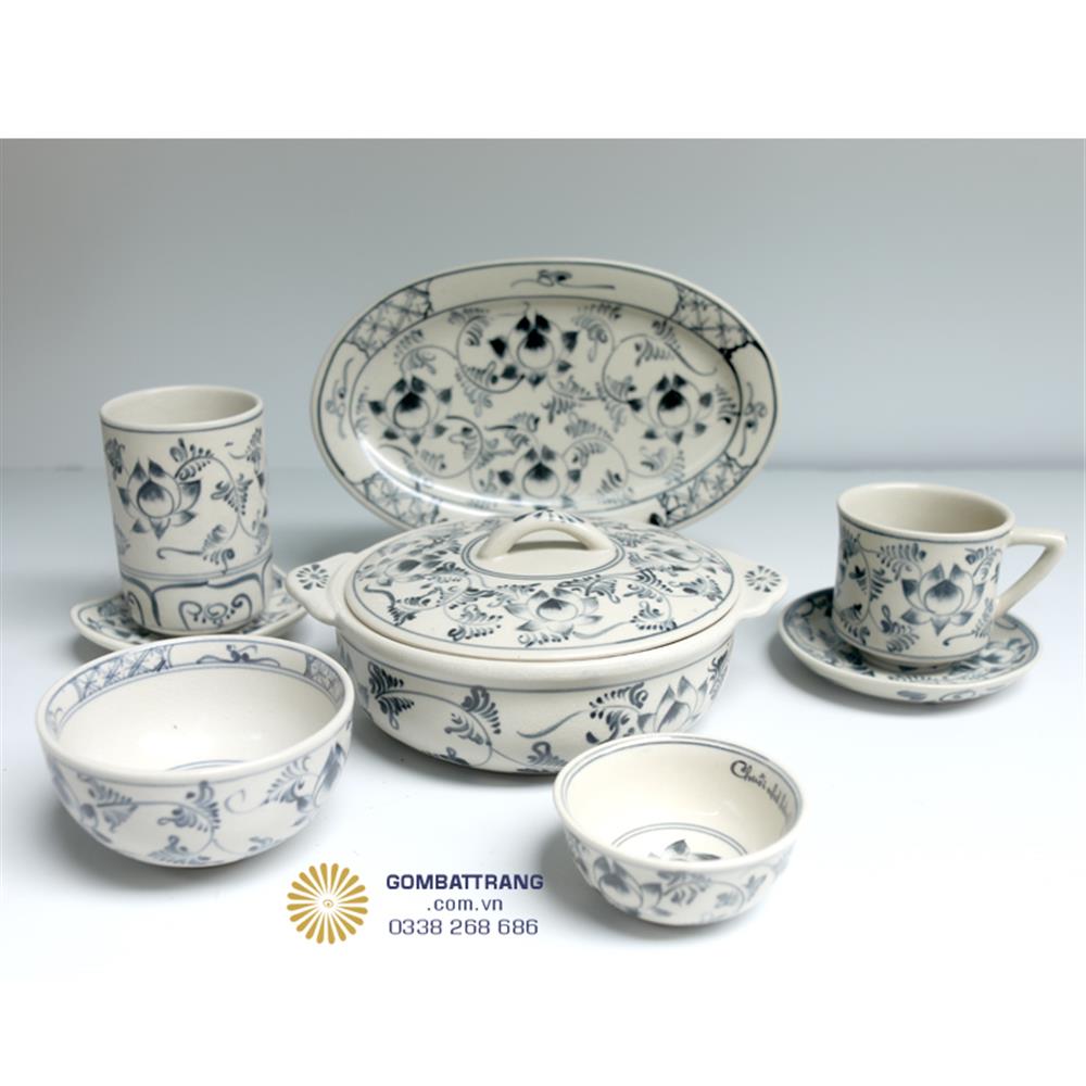 Bộ Chén Dĩa Gốm Bát Tràng Hoa Sen Đẹp Độc