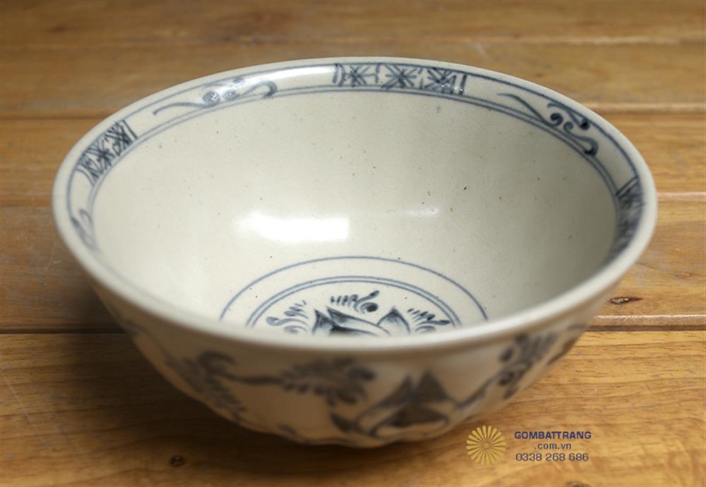 Màu men trắng ngà mịn màng, nét lam xanh sâu, hoa văn sen thủ công