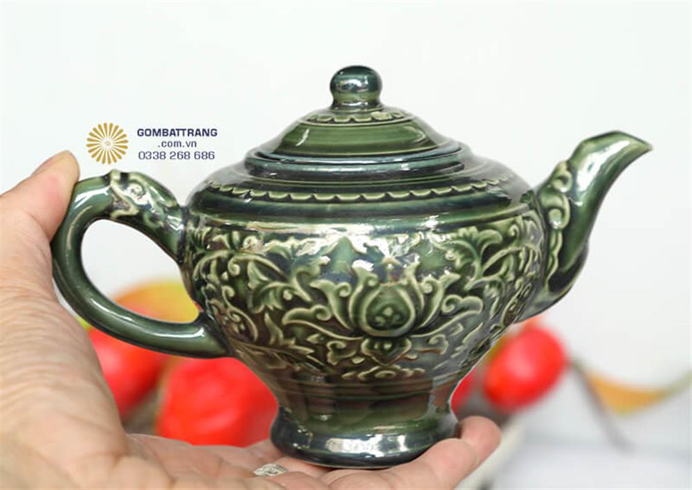 Ấm Trà Nghệ Thuật Họa Tiết Hoa Sen Nổi Bật