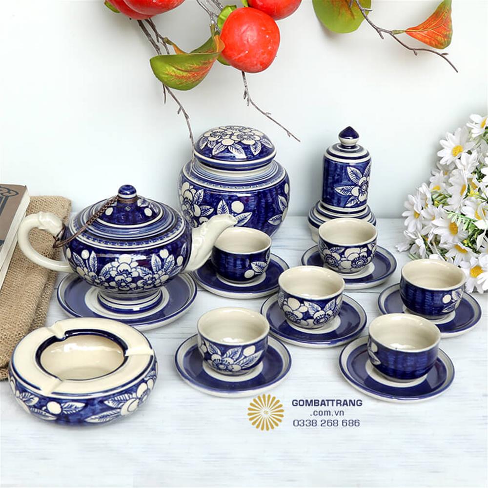Trong không gian thưởng trà tinh tế của người Việt, bộ tách trà sang trọng không chỉ đơn thuần là dụng cụ phục vụ mà còn là biểu tượng của đẳng cấp và gu thẩm mỹ tinh tế. Bộ ấm chén đẹp cao cấp với họa tiết hoa đào truyền thống trên nền sứ xanh lam Bát Tràng chính là sự lựa chọn hoàn hảo cho những ai yêu thích văn hóa trà đạo.bộ tách trà sang trọng