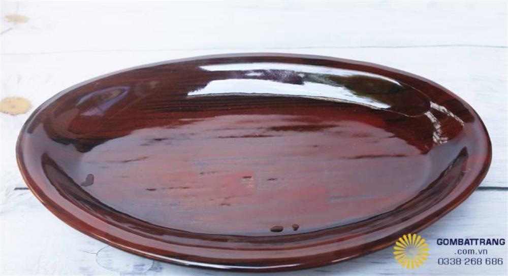 Đĩa Bát Tràng men nâu đỏ đường kính lớn, bề mặt phẳng đều, thích hợp làm đĩa trưng bày nghệ thuật.