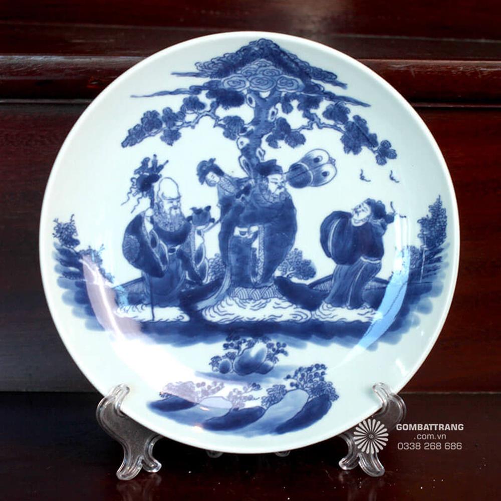 Trung tâm chiếc chén dĩa kiểu xưa là hình ảnh bộ ba Tam Đa: Phúc – Lộc – Thọ. Phúc tượng trưng cho hạnh phúc gia đình, Lộc đại diện cho tài lộc, công danh thịnh vượng, còn Thọ là biểu tượng của sức khỏe trường tồn. Trong văn hóa Á Đông, sự xuất hiện của Tam Đa luôn gắn liền với lời chúc phúc viên mãn. Trên chiếc đĩa gốm cổ, ba vị thần được khắc họa sinh động, thể hiện vẻ uy nghiêm nhưng hiền hòa, khiến sản phẩm trở nên đầy ý nghĩa.chén dĩa kiểu xưa
