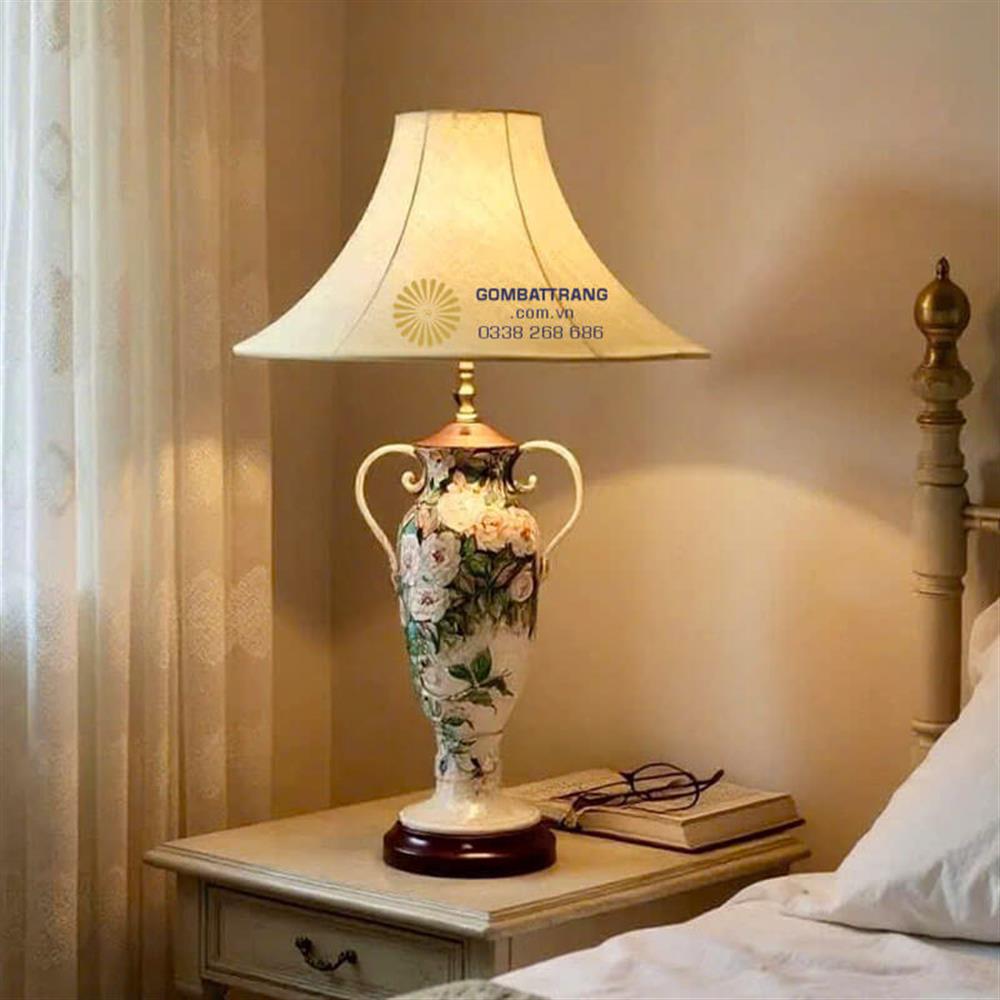Đèn ngủ gốm – họa tiết hoa vẽ tay tinh xảoĐèn ngủ gốm