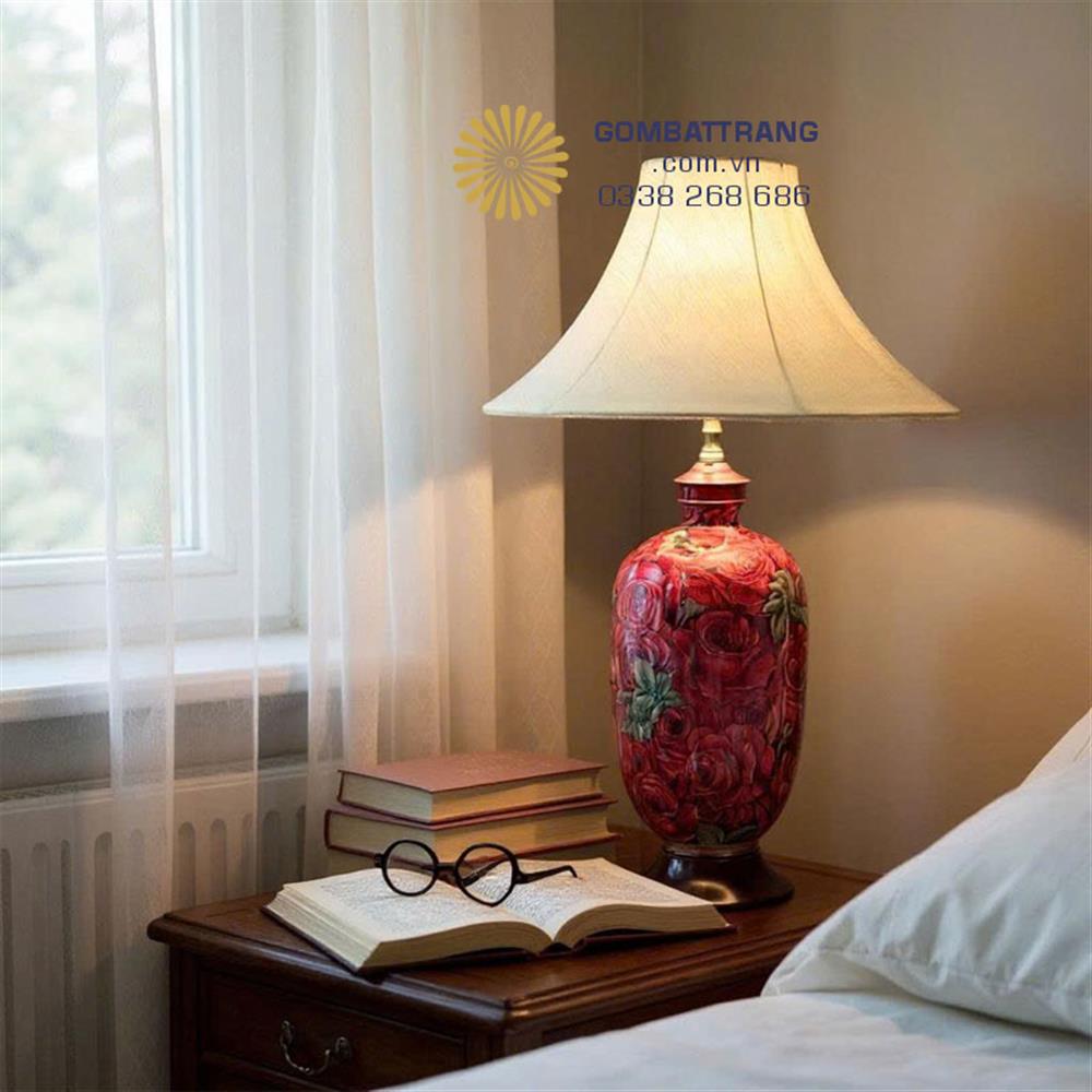 Đèn ngủ gốm bát tràng với chất liệu gốm sứ bền đẹp, tạo sự ấm áp và sang trọng trong phòng ngủ