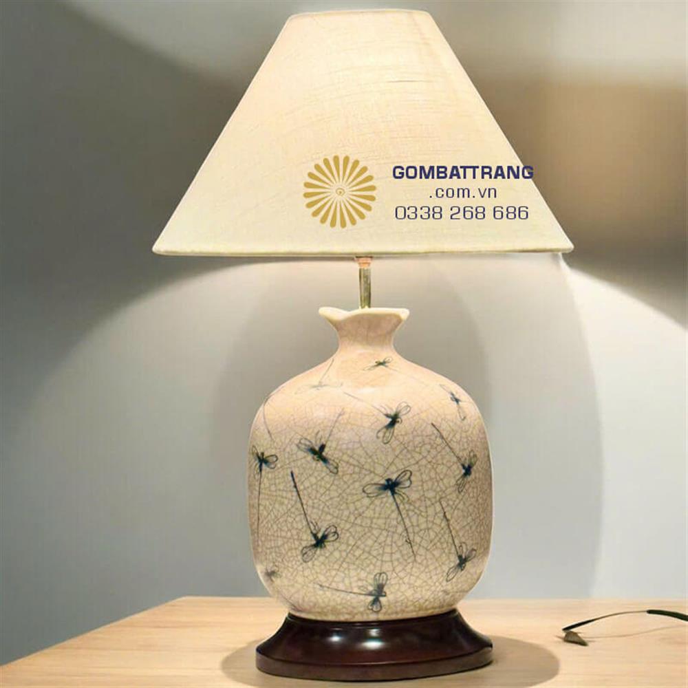 Mẫu đèn ngủ gốm vẽ tay chuồn chuồn kim mang ý nghĩa may mắn và bình yên cho bé.