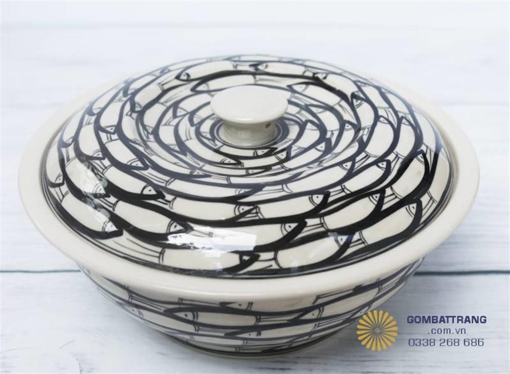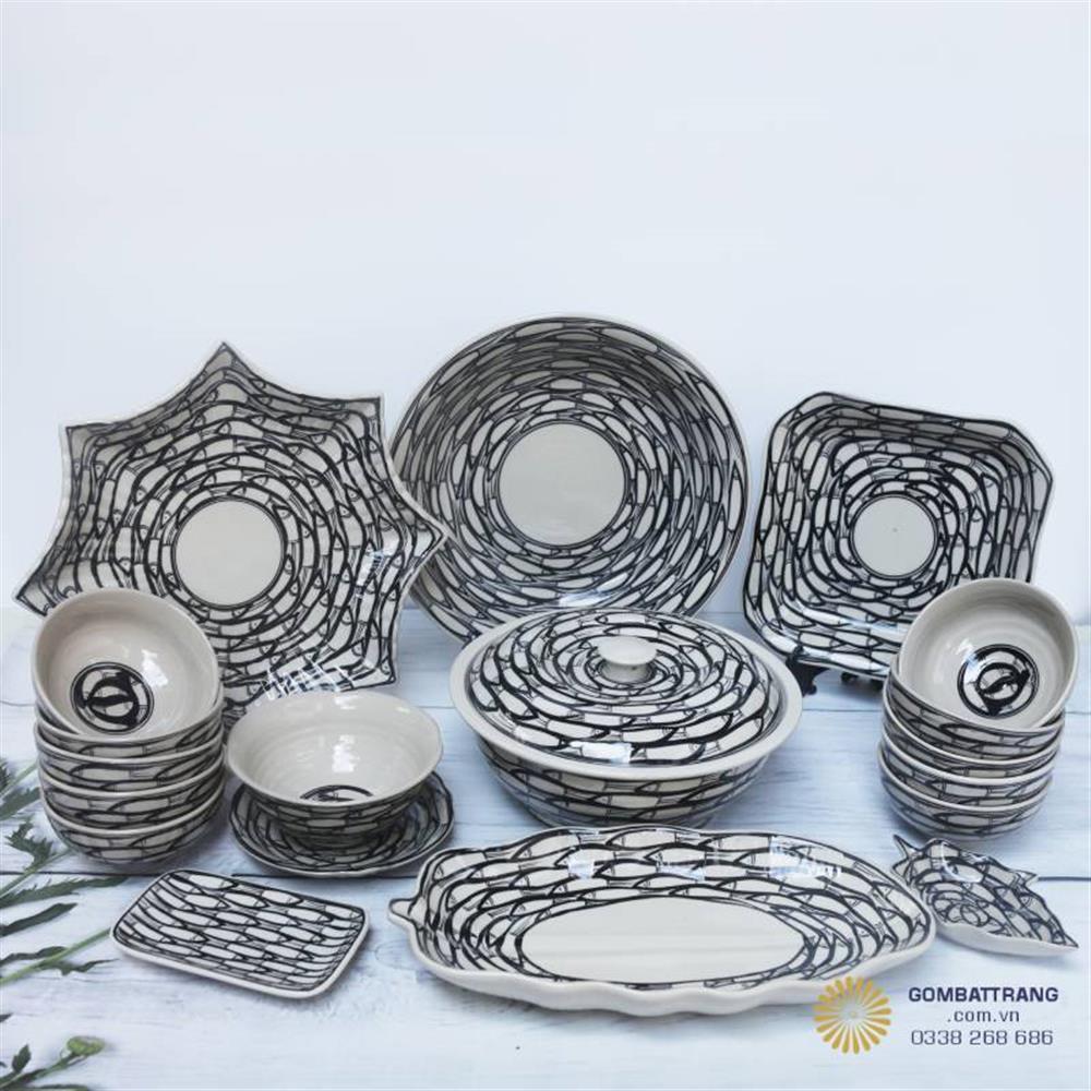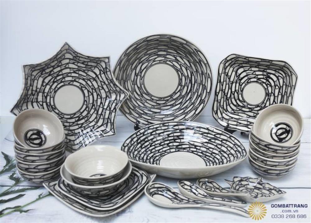 Bát ăn và bát tô: Thiết kế gọn tay, lòng sâu, tiện lợi cho việc dùng cơm, canh hay các món nước. Các vòng cá ở lòng bát giúp sản phẩm trở nên lạ mắt, khác biệt so với những bát đĩa Bát Tràng đẹp thông thường. đĩa trưng bày Bát Tràng phong cách