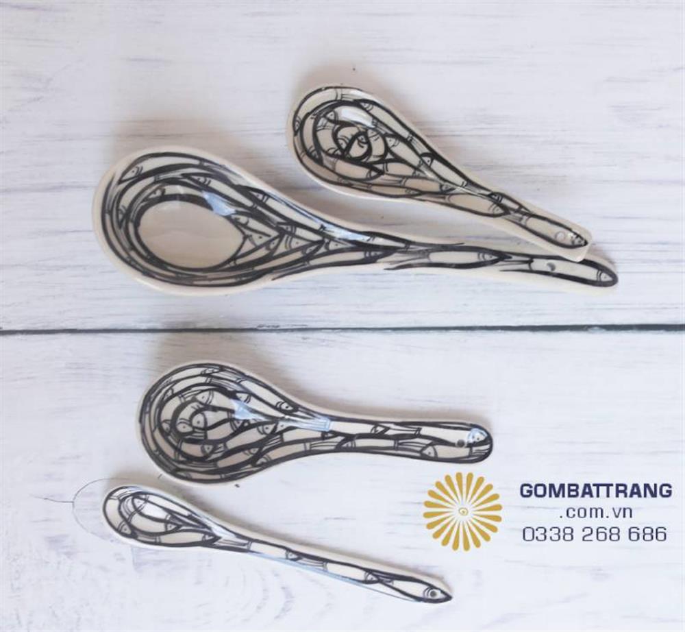 Bộ muỗng sứ men ngà họa tiết cá, thiết kế chắc tay, tiện dụng khi dùng cùng súp, canh hoặc cháo.