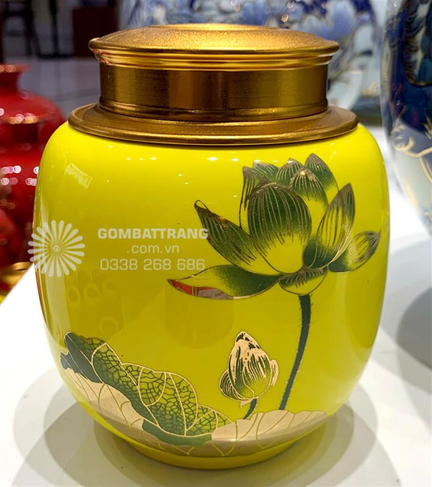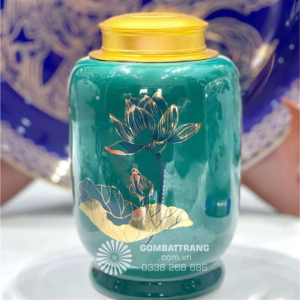 Trong không gian thưởng trà đậm chất Á Đông, hộp đựng trà gốm sứ bát tràng không chỉ đơn thuần là vật dụng bảo quản mà còn là biểu tượng văn hóa tinh tế. Bộ sưu tập lọ đựng chè đẹp họa tiết sen xanh mạ vàng mang đến giải pháp hoàn hảo cho những tín đồ yêu thích nghệ thuật trà đạo, kết hợp hài hòa giữa công năng thực tế và giá trị thẩm mỹ phong thủy.hộp đựng trà gốm sứ bát tràng