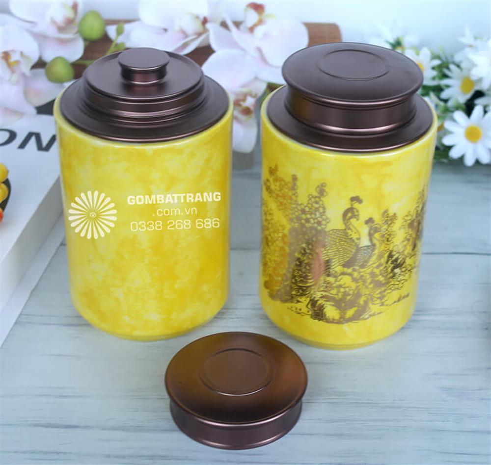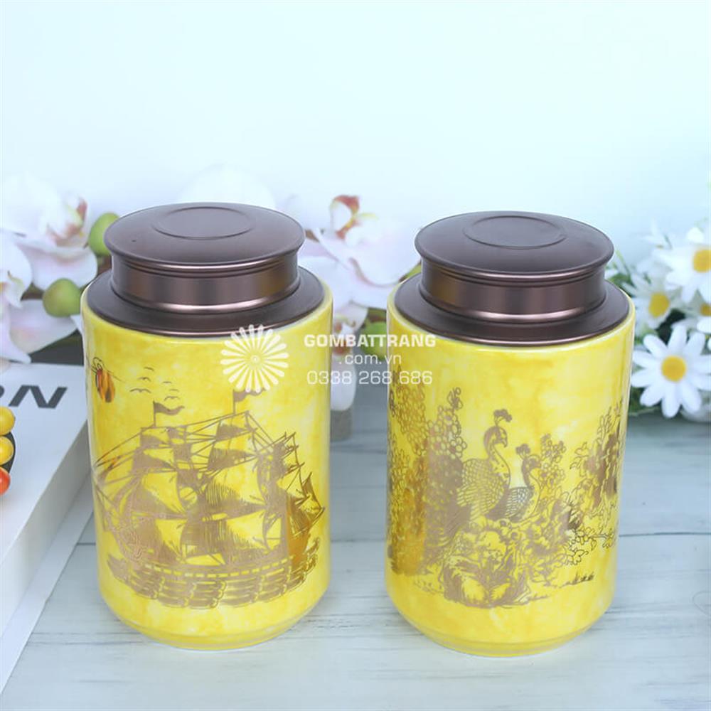 Với họa tiết mạ vàng sang trọng, lọ đựng chè bát tràng phù hợp với nhiều phong cách nội thất khác nhau
