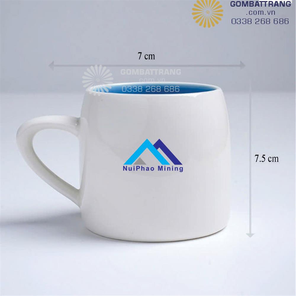 Ly sứ men trắng bên trong men xanh, thiết kế đẹp,sứ sạch an toàn, men bóng mịn, in logo lên ly sứ đẹp, sắc nét